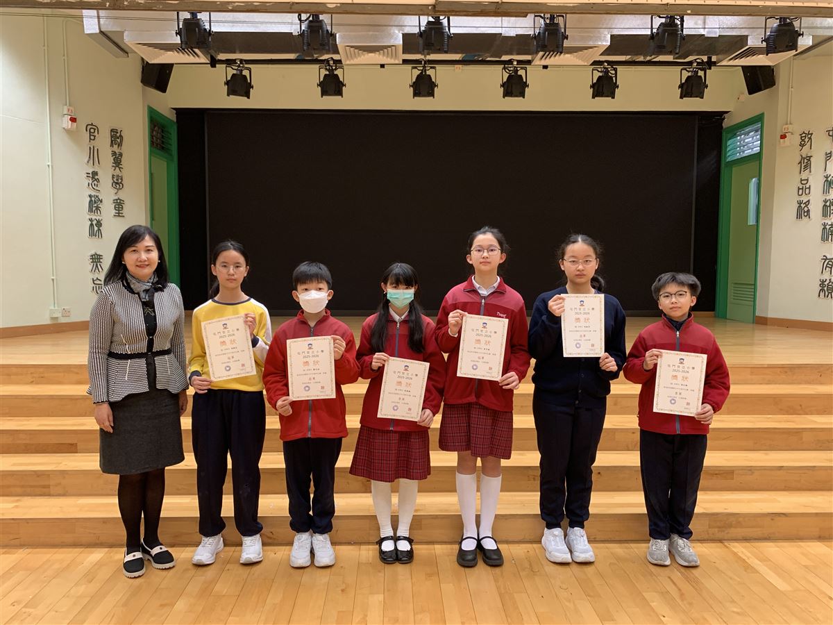 1A 薛洺凡1B 張家傑1C 陳寯揚1C 梁佑琳1D 楊學承2A 袁康榗2B 楊汶洛2C 卓子朗2D 陳佩瑜2D 蕭穎浠3A 吳萱晴3B 韋泳欣3C 崔熙恩3D 陳富淇3D 彭駿昇4A 李卓朗4B 陳煒桐4C 吳榮軒4D 陳鉦庭4D 羅珮文5A 鍾繥謠5B 鍾梓琳5C 賴昊朗5D 梁愷嵐5D 石佑昇6B 黃銥澄6C 何霈錡6C 李泳錡6D 陳紫瑜6D 朱芷萱